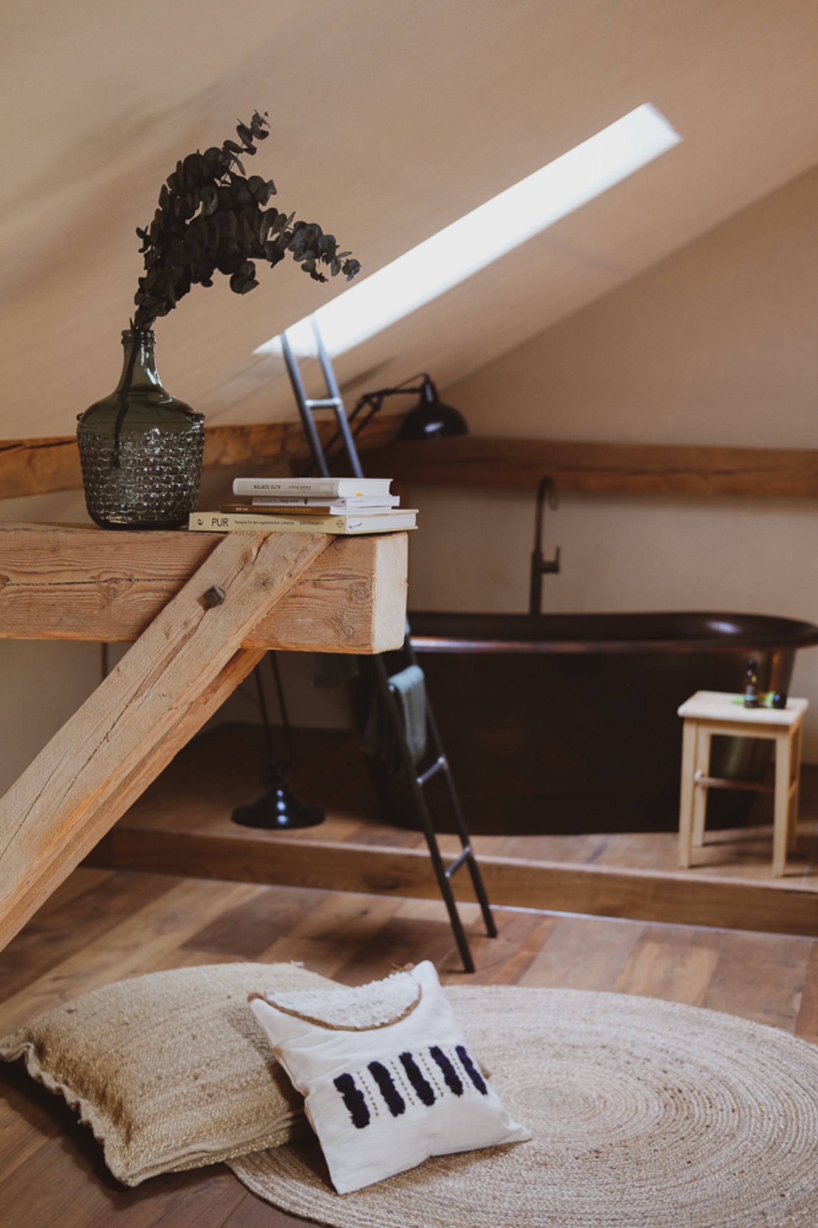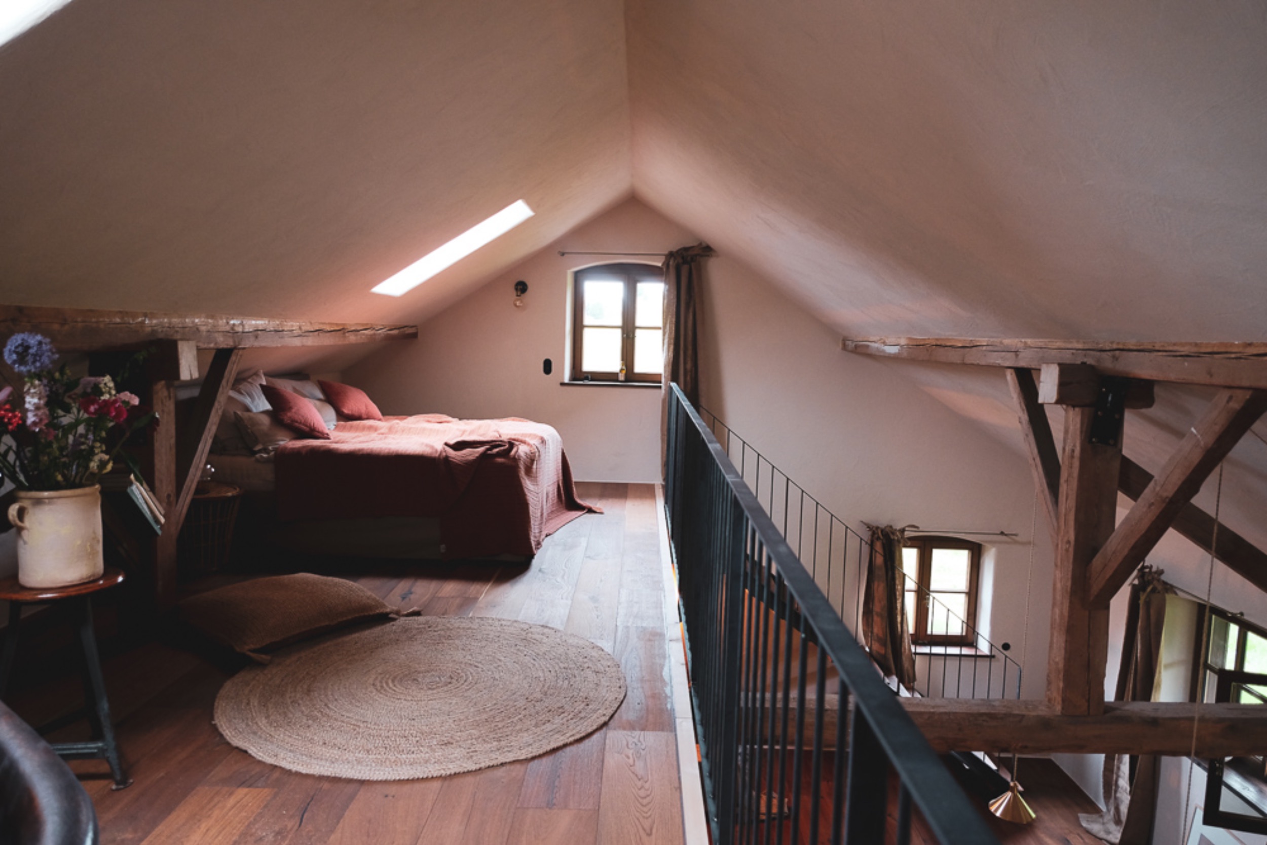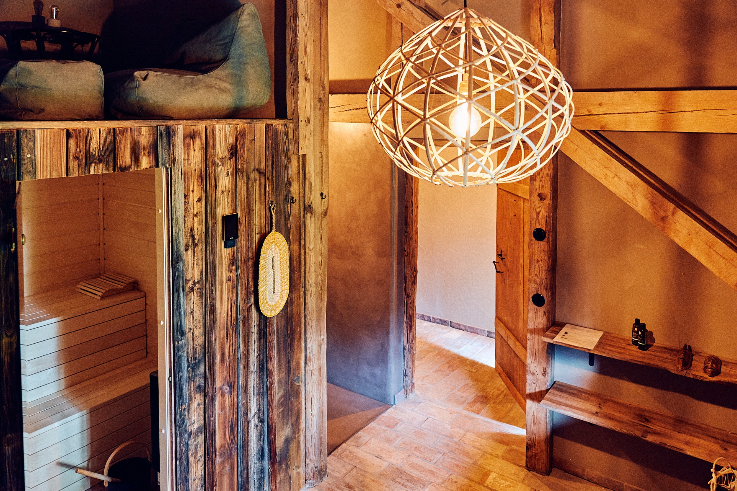 Christian Müller und Lisa Rühwald haben diesen besonderen Ort mit Seele geschaffen, für sich und für Gäste, die das alte Gehöft mit Leben füllen, fernab von Hektik und Lärm der Großstadt. Mit viel Feingefühl, Liebe zum Detail und Sinn für Ästhetik haben die beiden zusammen mit lokalen Handwerkern die historische Tenne mit regionalen und ökologischen Naturmaterialien renoviert und drei außergewöhnliche, großzügige und voll ausgestattete Bleiben mit hohen Decken geschaffen. Der Stil ist unperfekt natürlich, zurückgenommen und heimelig. In der Sauna lässt es sich mit Zirbelkiefer-Aufguss prima schwitzen, im Atelier vor dem offenen Kamin die Seele baumeln lassen und im separaten Studio meditieren oder yogieren.