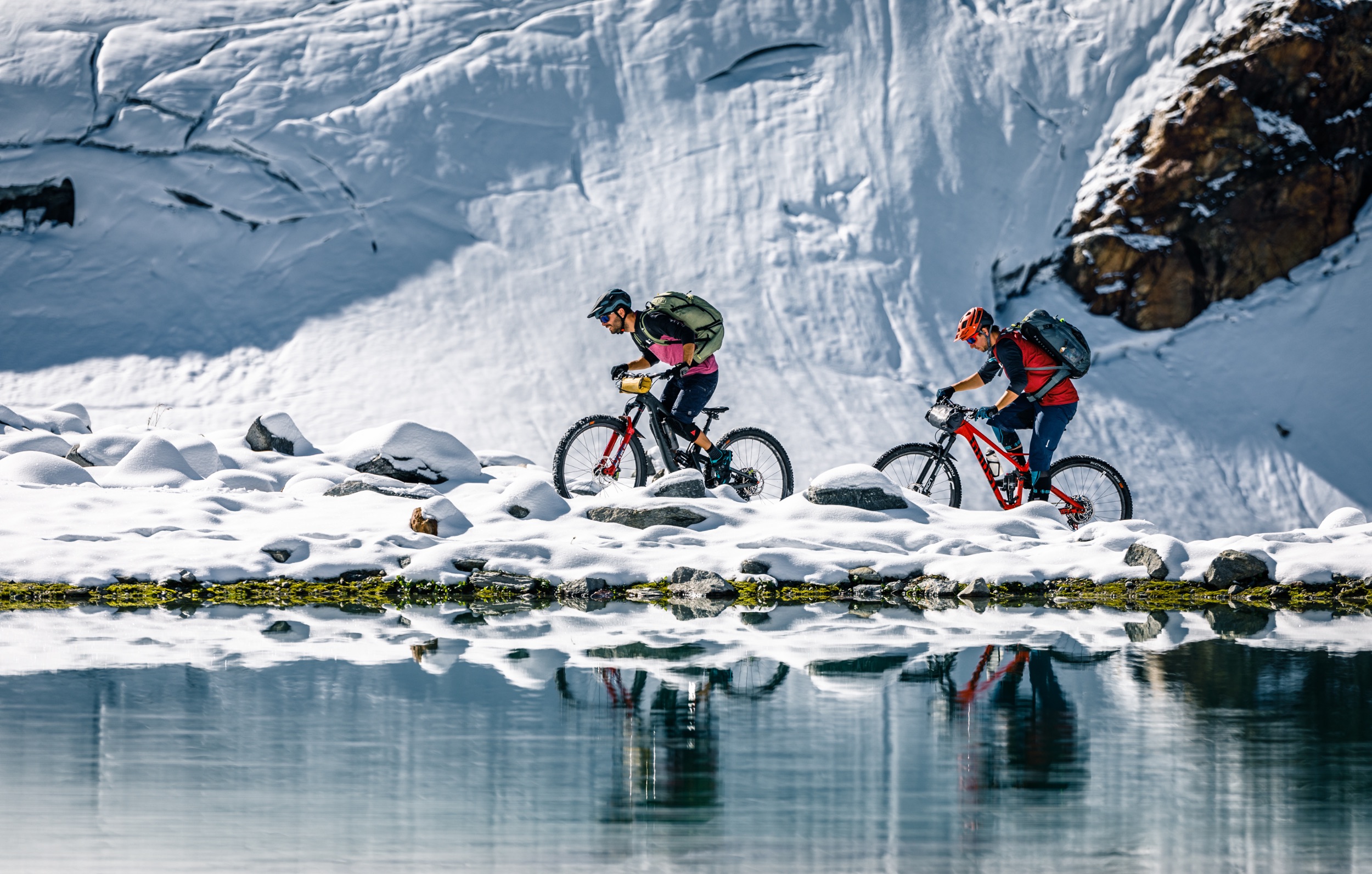 Traumhafte Hochgebirgslandschaften erkunden, eine gute Zeit auf urigen Hütten verbringen und einzigartige alpine Trails vom Achensee an den Reschensee zu befahren – das war unser Plan. Wir, das sind die Wahltiroler Fabian Spindler, Konstantin Seger und Max Draeger sowie der Mountainbike-Profi Tobias Woggon. Doch die Rechnung haben wir ohne das Tiroler Augustwetter gemacht: Konfrontiert mit einem Wintereinbruch inklusive 30 Zentimeter Neuschnee musste unser Quartett die Erwartungen stark zurückschrauben und umplanen, um auf Umwegen am Reschensee zum verdienten Abschluss-Bier zu kommen. Enttäuscht wurden wir trotzdem nicht, denn alpines Bikepacking ist schließlich so viel mehr als auf einem Radl von A nach B zu fahren…