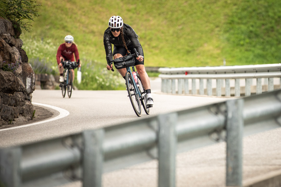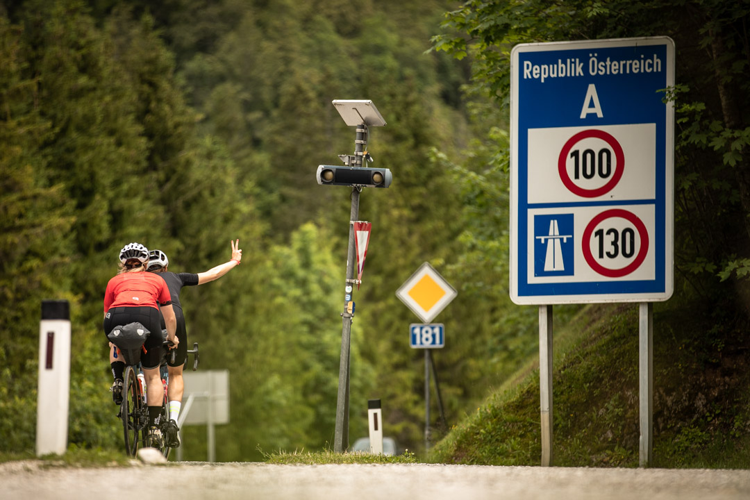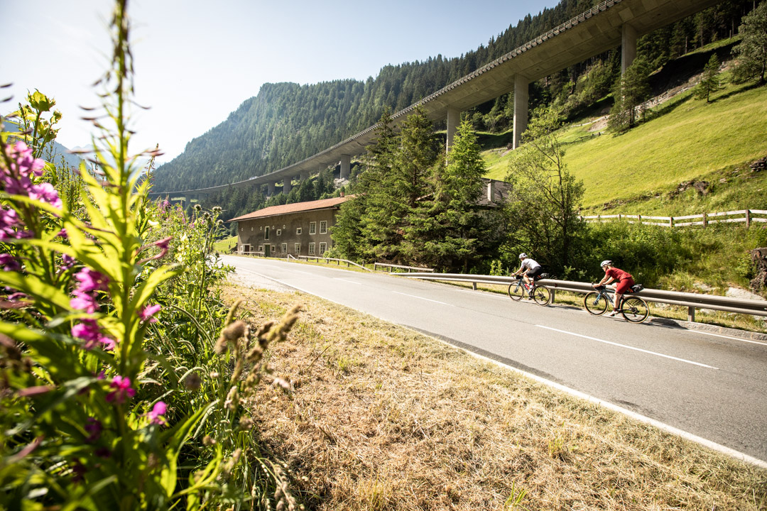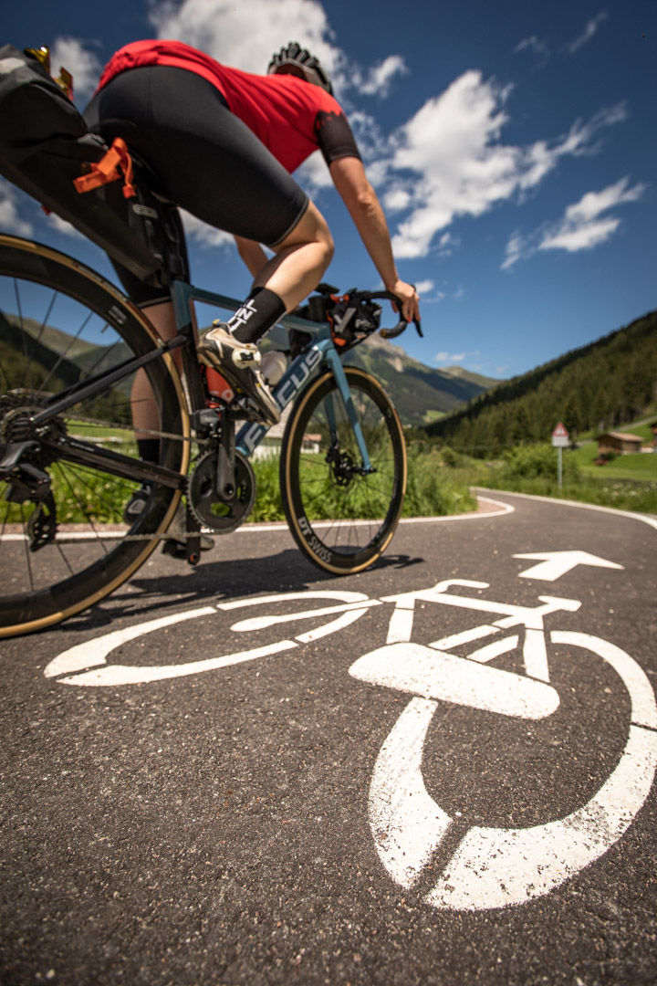 Unser Plan ist heute von München über den Sylvensteinspeicher und Achensee nach Patsch in Tirol zu fahren und morgen über Brenner und Jaufenpass nach Lana bei Meran in Südtirol. Das Gepäck haben wir in unseren Satteltaschen dabei. Meike fährt das erste Mal mit dem Rennrad über die Alpen, ich habe es schon einmal hinter mir – in drei Tagen von München über Leutasch, Sölden und das Timmelsjoch nach Bozen. Der Vorsprung an Erfahrung macht mich aber nicht wirklich sicherer. Diesmal werde ich neben – oder besser gesagt hinter Meike definitiv die Schwächere in unserem Zweier-Alpencross-Team sein. Und nach einem dank Corona und Lock Down spitzenmäßigen Start in die Saison mit Touren bis zu 250 Kilometern am Stück, musste ich die letzten Wochen meinen Outlook-Kalender pflegen und den konsequenten Trainingsplan dafür eher vernachlässigen. Im Frühjahr waren meine Freundin Meike, die ich durch die Munich Mountain Girls kenne, und ich drei, viermal pro Woche gemeinsam mit dem Rennrad auf Münchner Klassikerrunden unterwegs. Da kam uns schnell der Gedanke, sobald die Grenzen wieder offen sind, mit dem Rennrad über die Alpen zu fahren. Die italienische Grenze schien uns noch länger geschlossen, also dachten wir Richtung Großglockner. Da die Italiener dann früher aufsperrten als vermutet, disponierten wir von der Südostroute auf die Südroute um. Erst trainieren im Dolce-Vita-Land mit Spritz und Pizza, dann quälen am Glockner, auf der höchstgelegenen, befestigten Passstraße Österreichs – so war der neue Plan für diesen Rennrad-Sommer. Doch kaum gibt der Virus kurz mal Ruhe, durchkreuzt ein anderer Umstand unsere Pläne: Ein Hangrutsch macht die Anfahrt zum Timmelsjoch von Österreich aus unmöglich und wir müssen unsere Route auf Brenner und Jaufenpass verlegen.