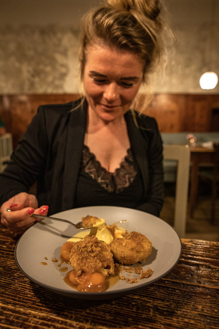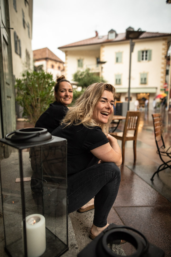 In Sterzing haben wir 50 Kilometer hinter uns und den Anstieg des Jaufenpasses direkt vor der Nase. Zeit uns im Biwak, einem durchaus empfehlenswerten Restaurant an der Rosskopf Talstation, nochmal zu stärken. Die Karte verspricht aus südtiroler und italienischen Komponenten zusammengewürfelte Kulinarik. Mit Rücksicht auf den empfindlichen Sportlerinnen-Magen teilen wir uns aber nur eine Gemüsepizza. Der Affogato danach muss allerdings sein, und wird mir am Jaufenpass noch Probleme machen.
