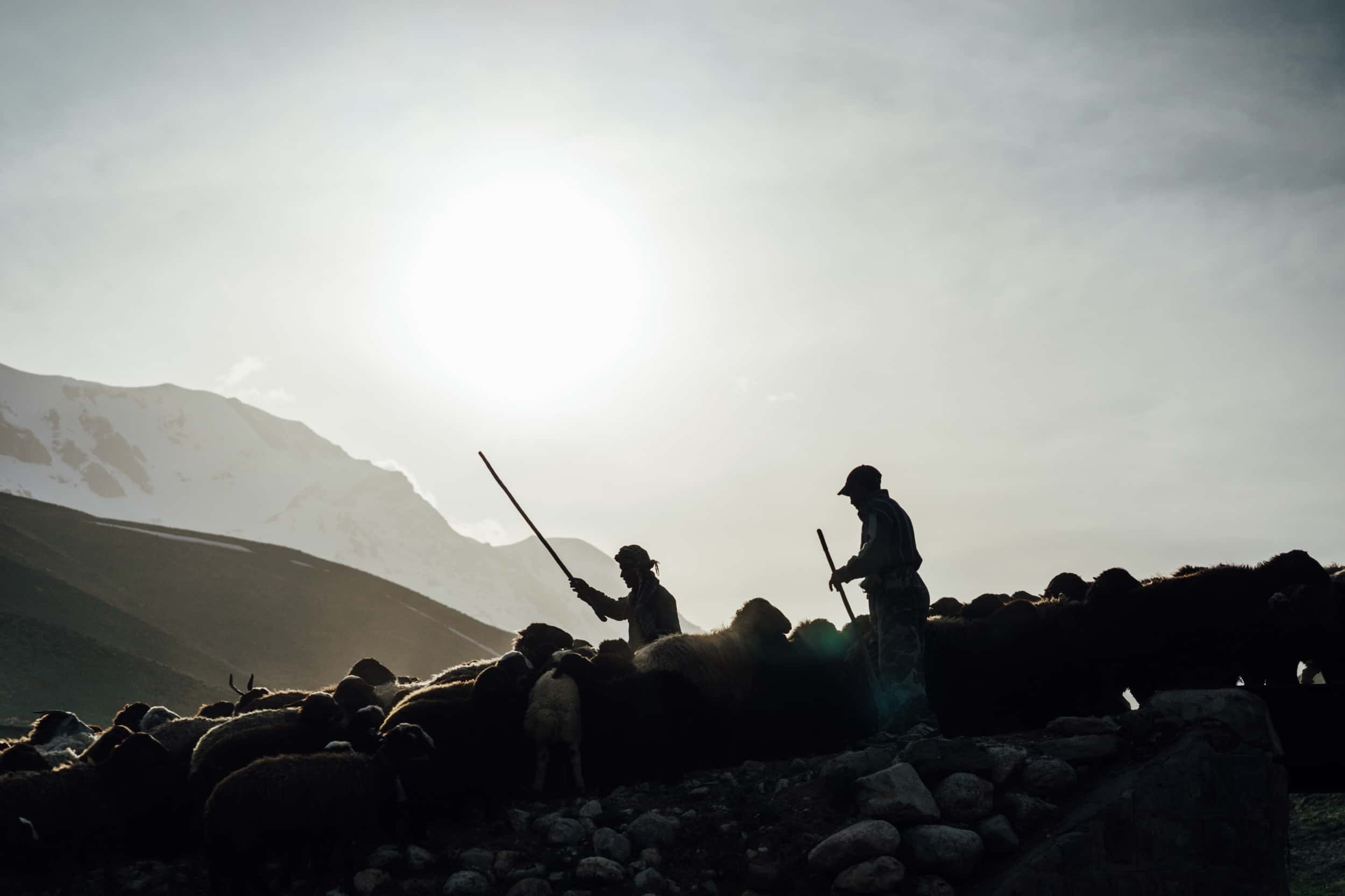 Vom namensgebenden Frost des Damavand kann bis dahin keine Rede sein. Ganz im Gegenteil: Die für die Jahreszeit viel zu warme Sonne säbelt an den endlosen Schneehängen, sodass wir am dritten Tag die Tour abbrechen. Eine weise Entscheidung! Nachmittags sehen wir eine gewaltige Lawine zu Tale rollen. Macht nichts, finden Puria und Andreas, ihr Film- und Fotomaterial wächst auch ohne Höhenmeter. Neben der Landschaft lassen die Menschen unsere Herzen höher schlagen. „Welcome to Iran“, begrüßen uns die Einheimischen herzlich und lachen uns an aus ihren zerfurchten, ledrigen Gesichtern. Ein paar Schäfer laden uns gar ein, mit Ihnen die Friedenspfeife zu rauchen. Schüchtern fragen wir, ob es statt des Opiums nicht auch eine Tasse Tee täte.