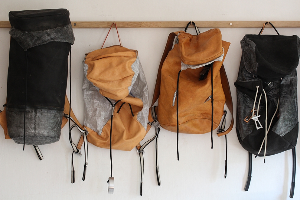 Leander: Das ist ein riesengroßes Spannungsfeld zwischen zwei Polen, die ich beide brauche. Nicht nur, um die Spannung zu erzeugen, sondern auch um zu überleben. Es interessiert sich hier in Oberammergau kaum einer dafür was ich mache. Der Rucksack an sich ist ein Kulturgut, das man eher in der Stadt braucht. Dort haben die Leute mehr Verständnis dafür, dass es einen Typen gibt, der sehr viele Stunden in einen Rucksack steckt und ihn dann für 1.700 Euro verkauft. Dieses Verständnis gibt es häufiger in der Stadt, wo das Spektrum an sich viel größer ist: Ich kann mir einen Burger für einen Euro reinhauen oder für 180 Euro Essen gehen. Aber ich brauche diesen Pol hier auch um des Überlebens willen, weil es hier günstig ist und ich neue Sachen ausprobieren kann. Wenn ich so eine große Werkstatt plus Wohnraum in der Stadt zahlen müsste, dann müsste ich so viel verdienen wie richtig bekannte Designer wie Philippe Starck.