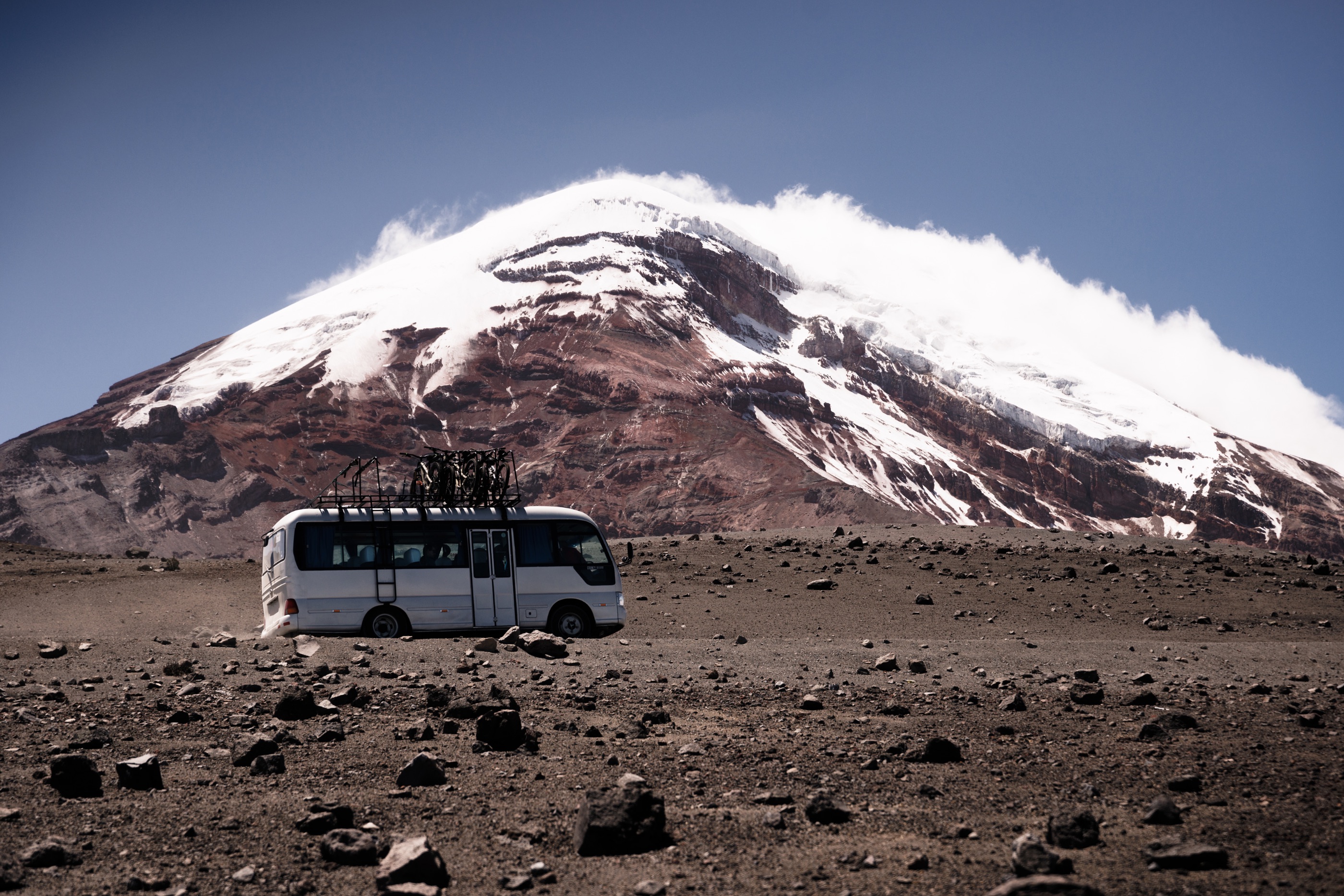 Auf unserer Reise entlang der „Avenida de Volcanes“ darf natürlich auch der höchste Berg des Landes nicht fehlen. Mit 6.263 Meter ist der Chimborazo ein wahrer Koloss, der mächtig über der Landschaft thront. Durch seine Lage am Äquator ist der Gipfel der näheste Punkt zur Sonne auf unserem Planeten. Wir nähern uns dem Berg zunächst auf der Ostseite, wo ein alter Freund von Estebán eine kleine Hütte auf 4.100 Meter betreibt. Rodrigo ist ein passionierter Bergsteiger, stand schon über vierzigmal am Gipfel des Chimborazo und lebt seit 36 Jahren hier oben. Es gibt einfaches Essen und Canelazo, einen selbstgembrannten Schnaps. Den ganzen Abend lauschen wir gespannt den Geschichten des 68-Jährigen über das Leben hier oben.
