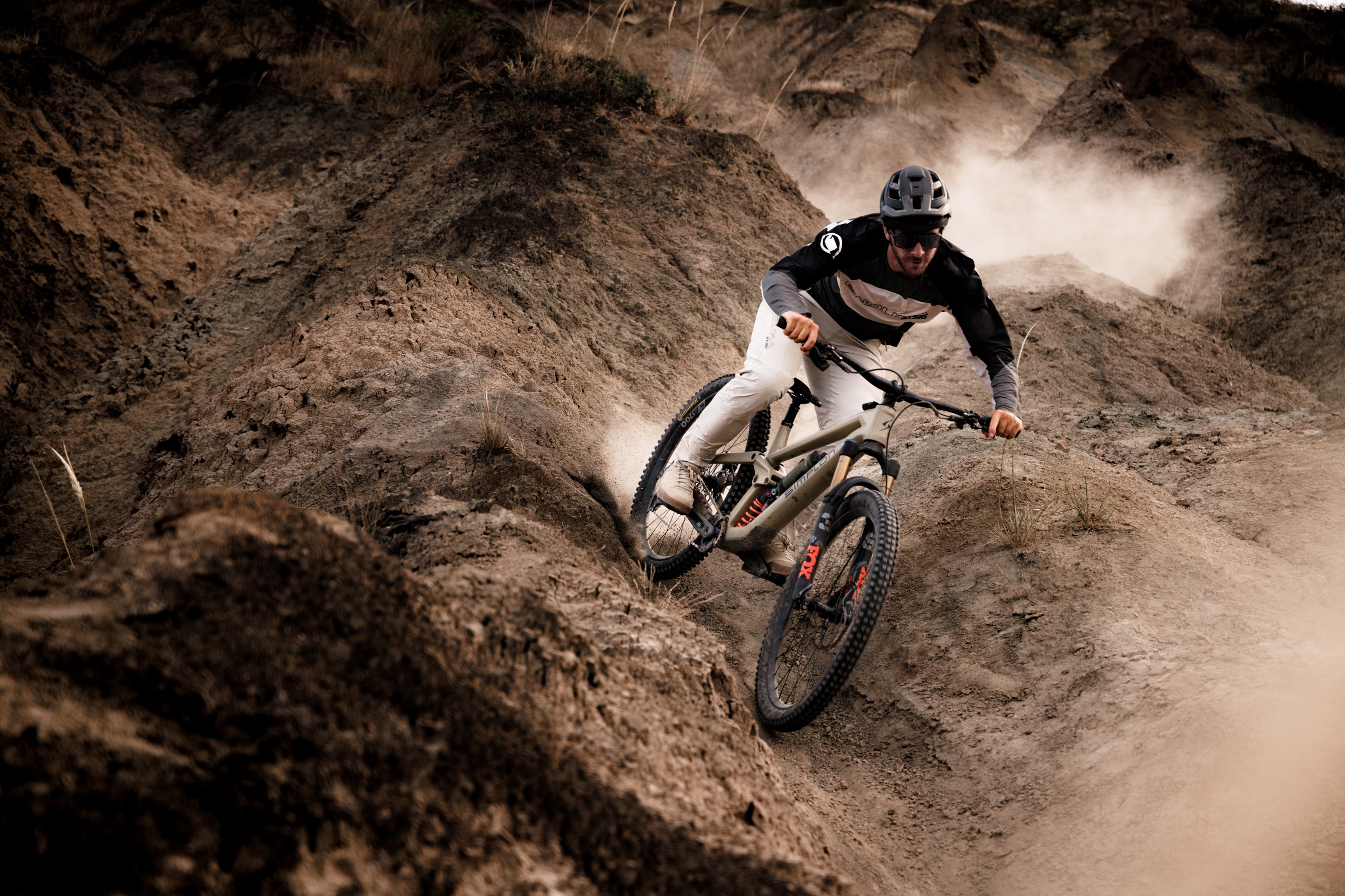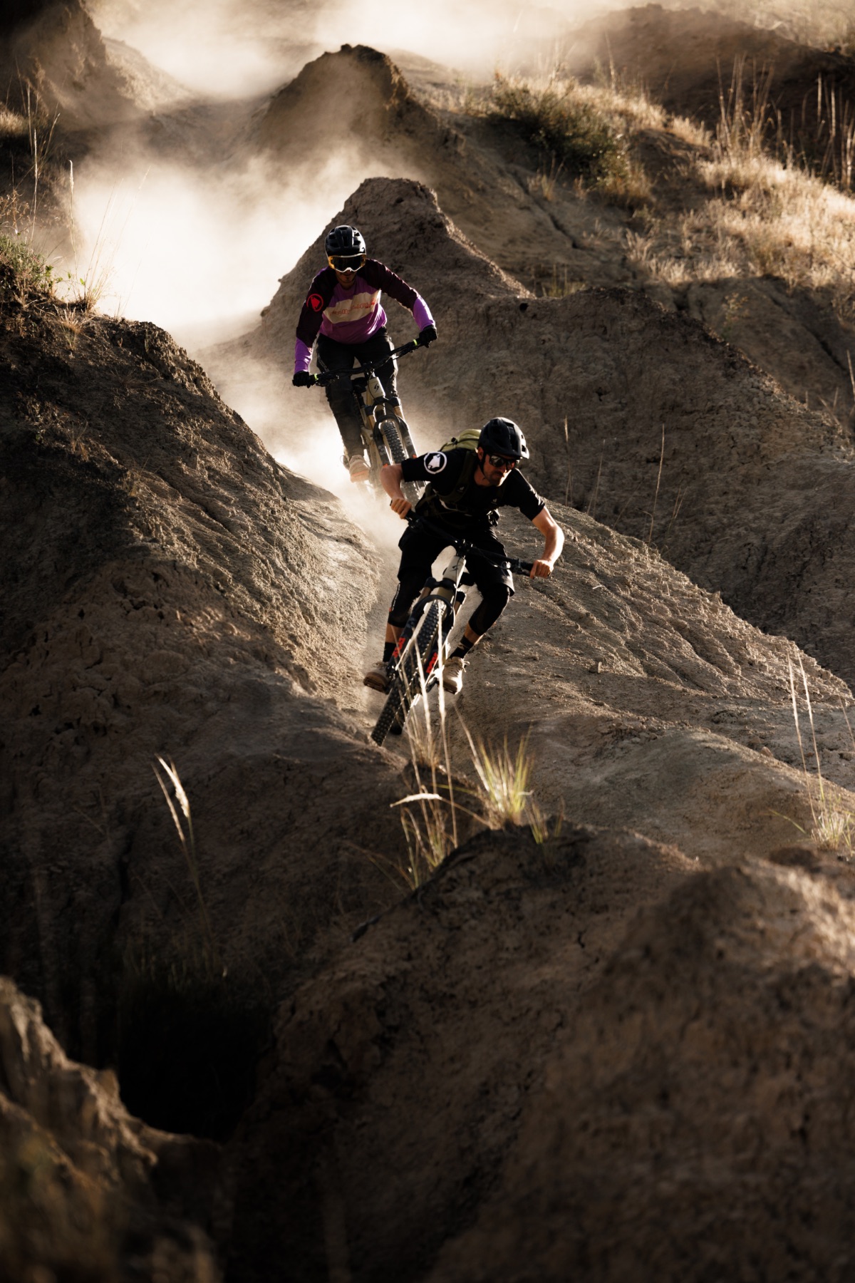 Am nächsten Tag geht es dann nach einem kurzen Shuttle das erste Mal so richtig zur Sache. Mit den Worten „Watch out, it’s loose and has some pretty deep ruts!” rollt Este vor uns in den Trail und verschwindet in einer gewaltigen Staubwolke auf der breiten Ridgeline. Die Beschreibung triffts gut, wir finden uns in einem Labyrinth aus Ruts jeglicher Größe. Die Pace, die unsere ecuadorianischen Freunde an den Tag legen, können wir erstmal nicht folgen und sind viel mehr damit beschäftigt beide Füße auf den Pedalen zu behalten. Gar nicht so einfach, wenn man im aufgewirbelten Staub des Vordermannes so gut wie blind unterwegs ist. Holy shit… ganz schön loco!