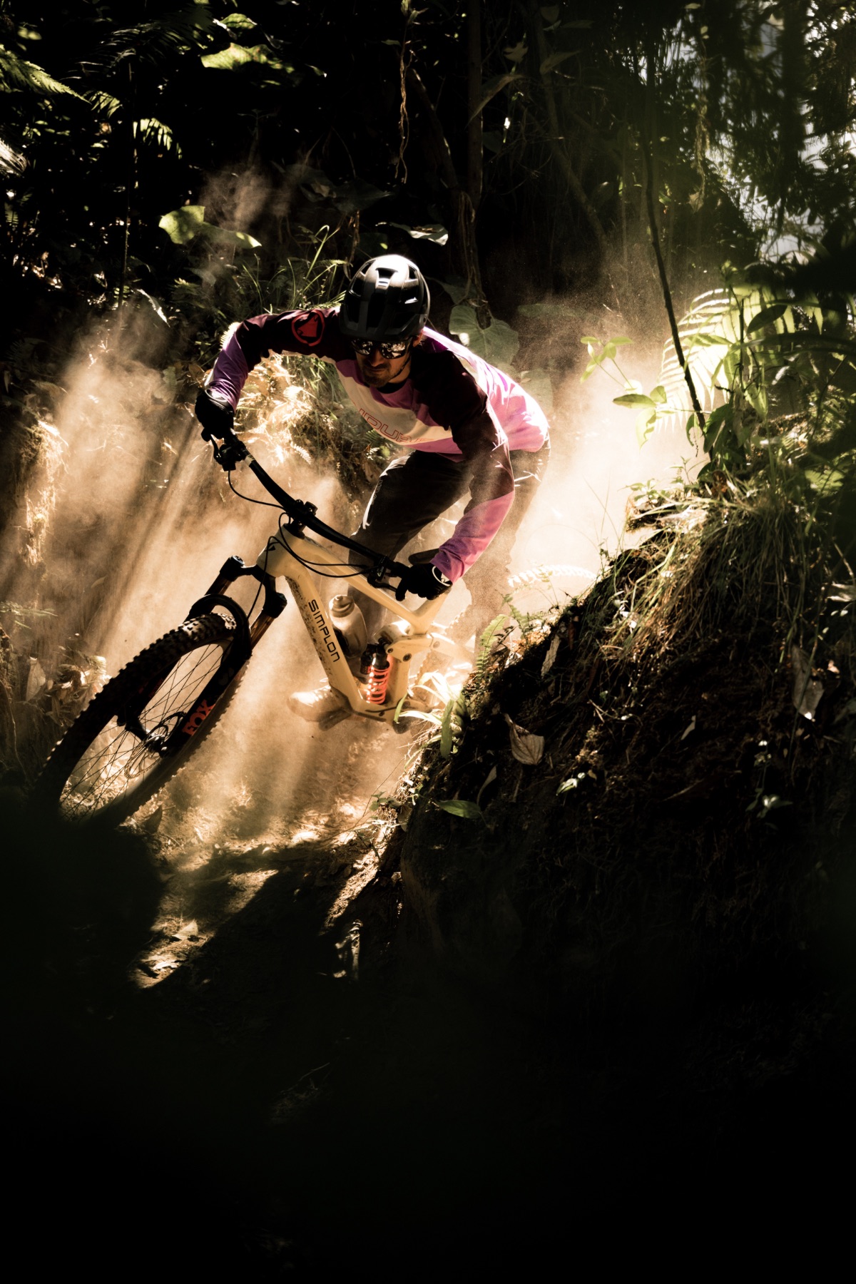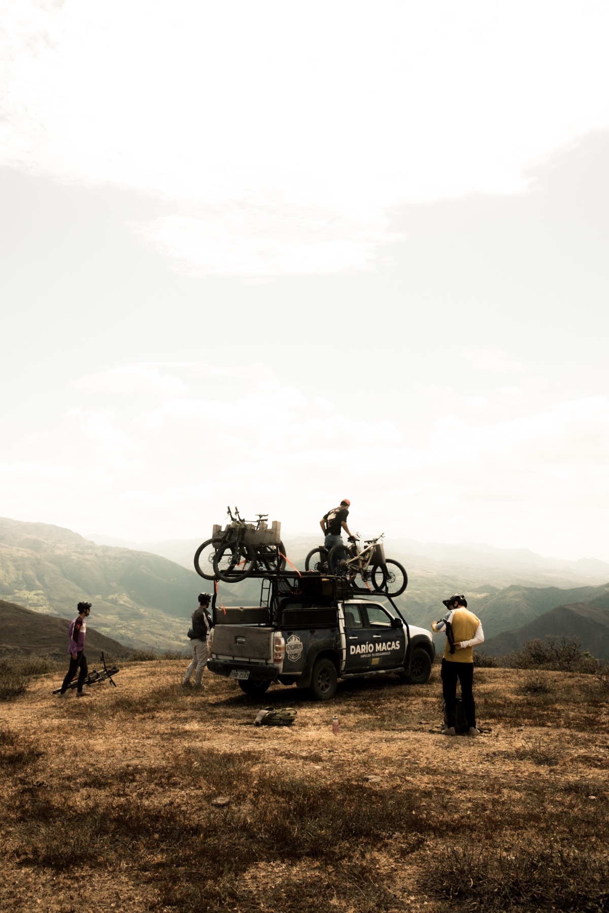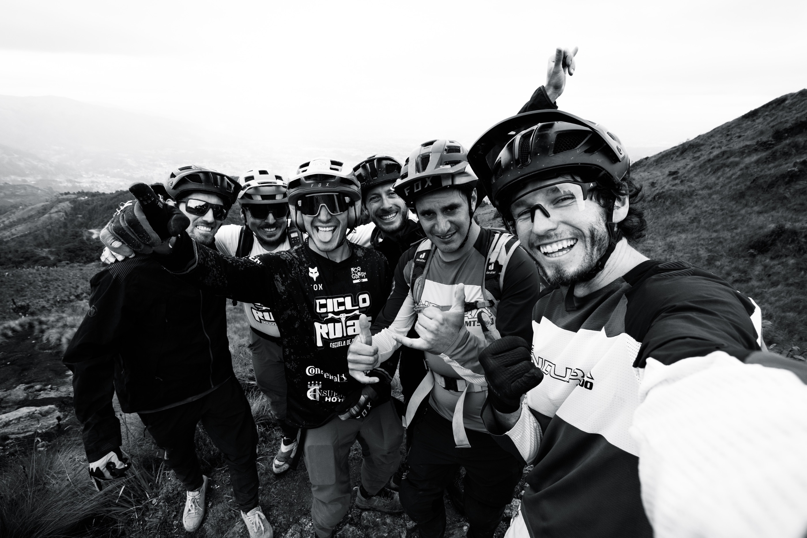 Auch am nächsten Tag erreichen wir den Trailhead wieder entspannt mit dem Bus, den Victor gekonnt auf eine grasige Kuppe manövriert. Daniel, das Mastermind hinter den Trails in Pimampiro ist, zeigt mit leuchtenden Augen in alle Richtungen und erklärt uns die verschiedenen Linien, die allesamt rund 1.000 Meter Höhenunterschied machen und für deren Bau er in der Regel zwei Monate mit seiner Crew benötigt. Es sind richtig gute Endurotrails mit Berms, kleinen Sprüngen, Stufen und engen Kurve - fast wie daheim. Gerade als wir uns ein bisschen zu sehr in der Komfortzone wägen, stoppt Daniel und warnt uns: „If you go straight, you enter a very steep and exposed ridge with little grip and no room for error. Have a look first!” Ok, wirklich steil. So steil, dass das Ende rund 100 Höhenmeter tiefer nicht zu sehen ist. Mini-Ramapge mitten im Nirgendwo. Sofort ist volle Konzentration und etwas Selbstvertrauen gefragt. Als letzter rollt Este in die Sektion, der getrost seinem Motto „Be scared or be loco“ ganz schön schnell am Weg ist. Mir stockt der Atem als er plötzlich über den Lenker geht, sein Bike sich mehrfach überschlägt und schließlich auf einem kleinen Absatz liegen bleibt. In einer absoluten No Fall Zone hat er es tatsächlich geschafft zu stürzen, ohne abzustürzen. Das war knapp! Vielleicht wäre auch der Fullface Helm für diesen Trip doch die passendere Wahl gewesen?!