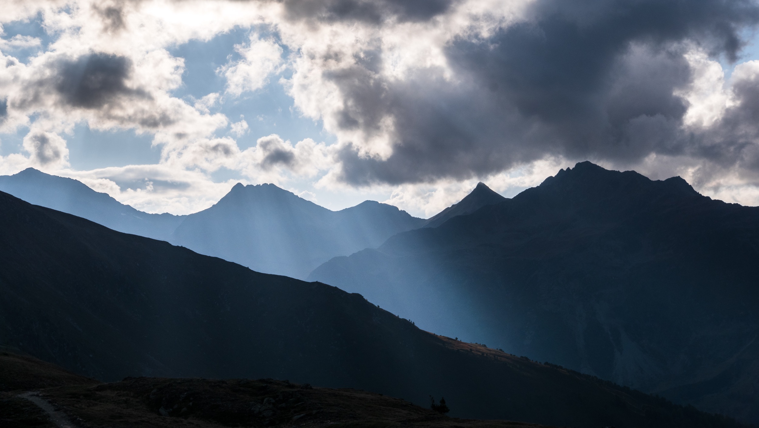 Der mittelschwere Flüstertrail ist ein klassischer alpiner Singletrail, steinig, teils geröllig, teils steil, teils verspielt zirkelt er sich die spärlich bewachsene Hangflanke hinunter zum kleinen Heustadel Dorf, wo man auf riesigen Holzliegen kurz verschnaufen kann.