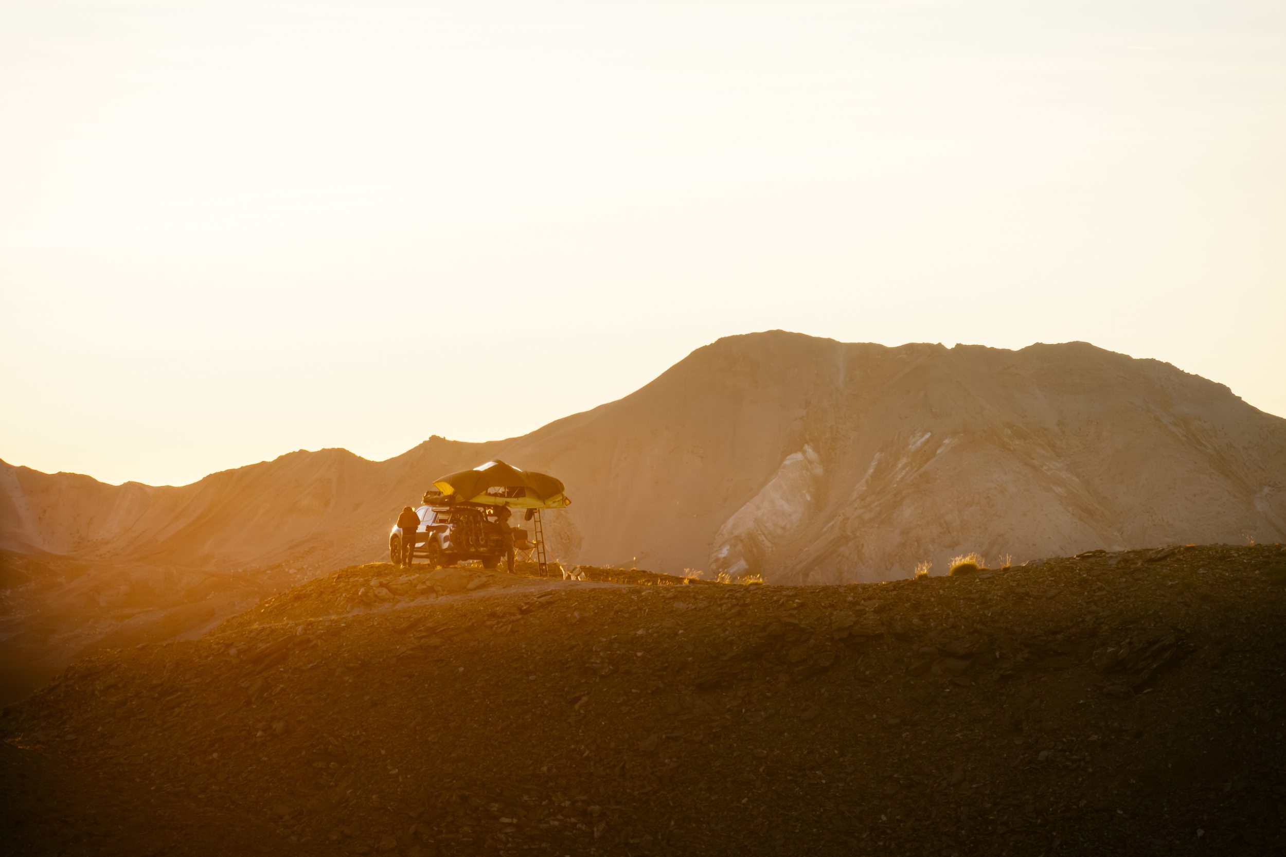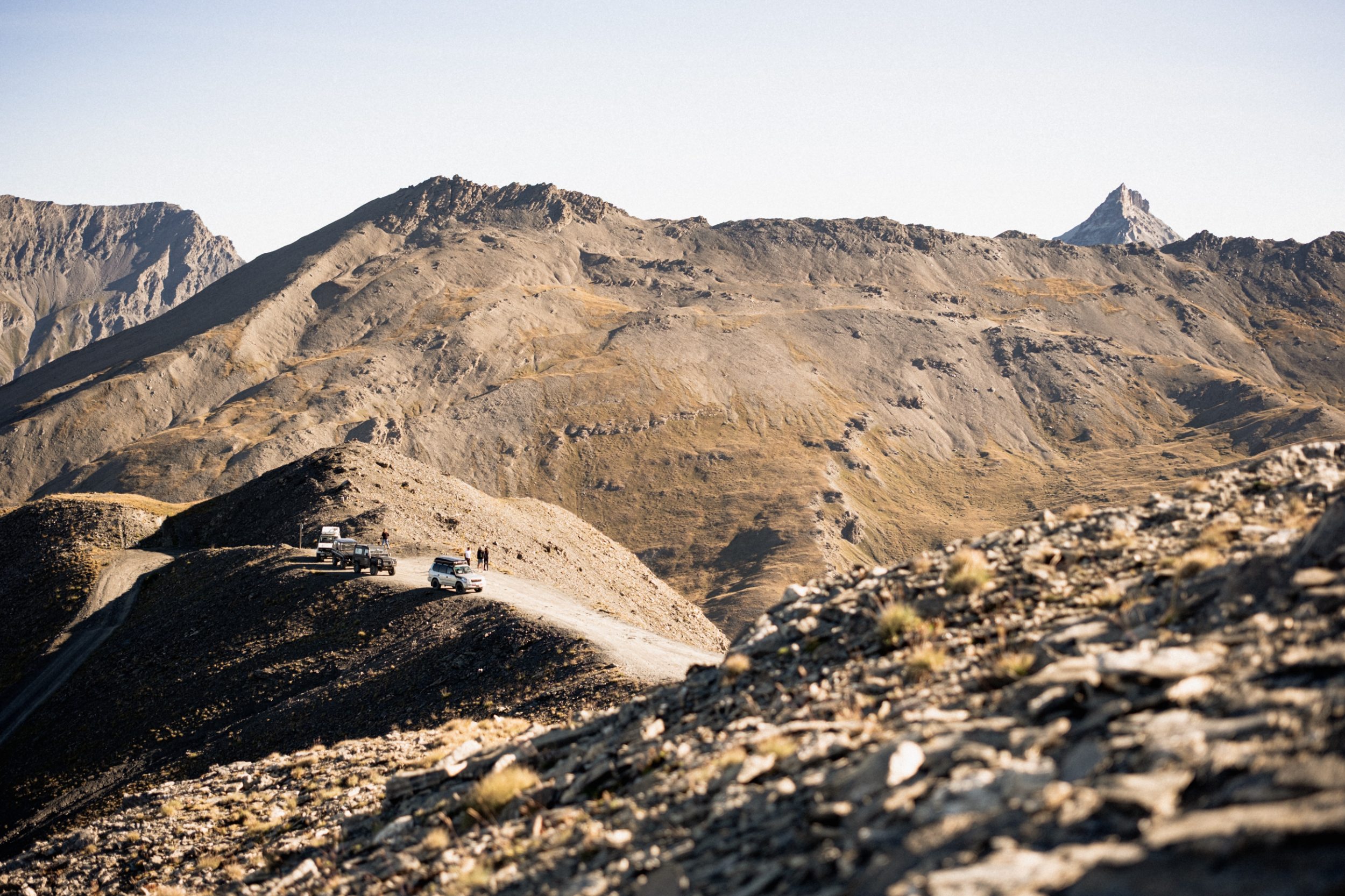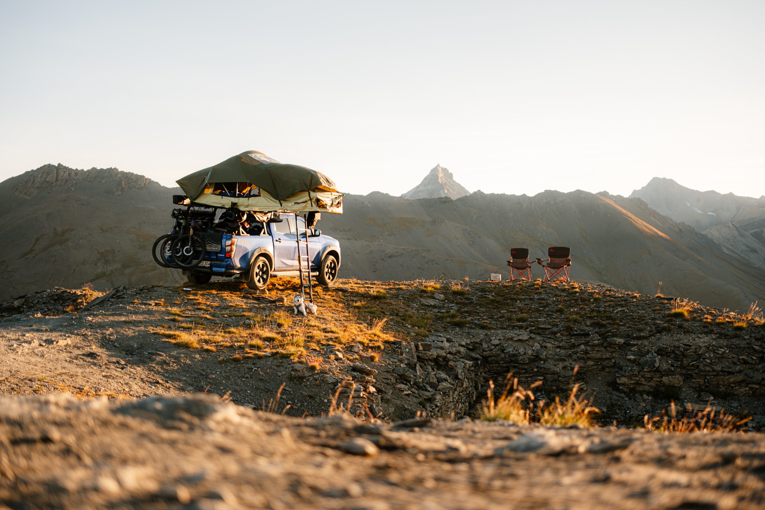 Mit mir unterwegs ist Jens: ein erfahrener Offroader, der ein Jahr in seinem alten Defender lebte und Afrika bereist hat. Mit seinen 37-Jahren hat er viel gesehen – nur in den Westalpen war er noch nie. Eigentlich ist Jens kein Bergmensch: Er liebt Wasser, Wellen, Meer – Sonnenaufgänge genießt er am liebsten am Strand. Doch der Blick vom 2.800 Meter hohen Monte Jafferau geht auch ihm unter die Haut. Das weiche Morgenlicht legt sich wie ein Seidentuch über unser Lager, dahinter die schroffe, karge Bergwelt der Hautes-Alpes. Warme Farben, kalte Luft, harte Kontraste – ein Rausch für die Sinne. Und das ist erst der Anfang.
