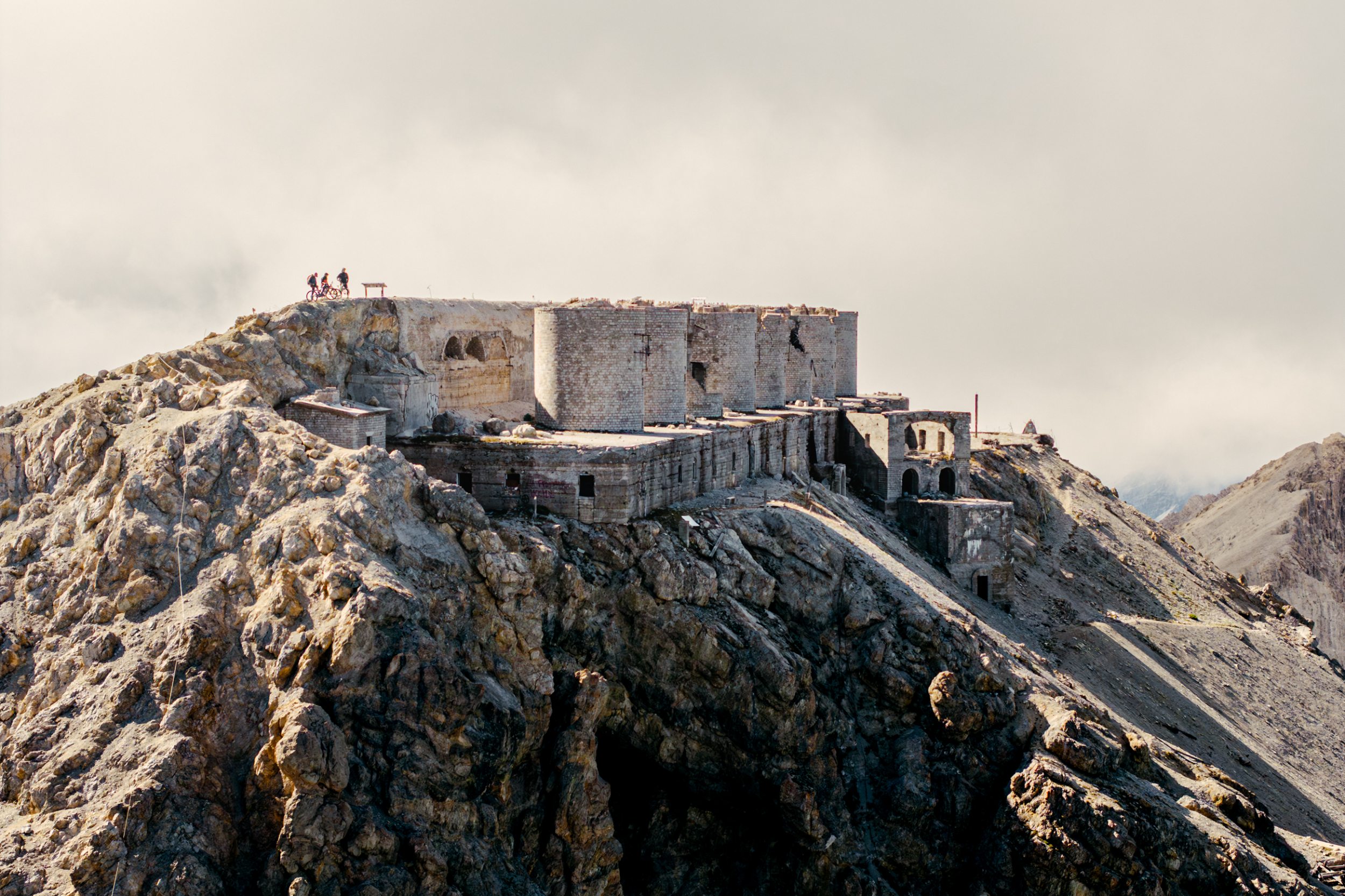 Ich setze mich auf den Beton, der einst das höchstgelegene Fort Europas trug. Ich spüre, wie sich in mir etwas verschiebt. Ich kam auf der Suche nach schnellen Trails, nach Action und Adrenalin. Gefunden habe ich die Liebe zur Langsamkeit. Mit Schleichfahrt durch die Berge zu gondeln, hat mir den Alltag von den Schultern geschüttelt.