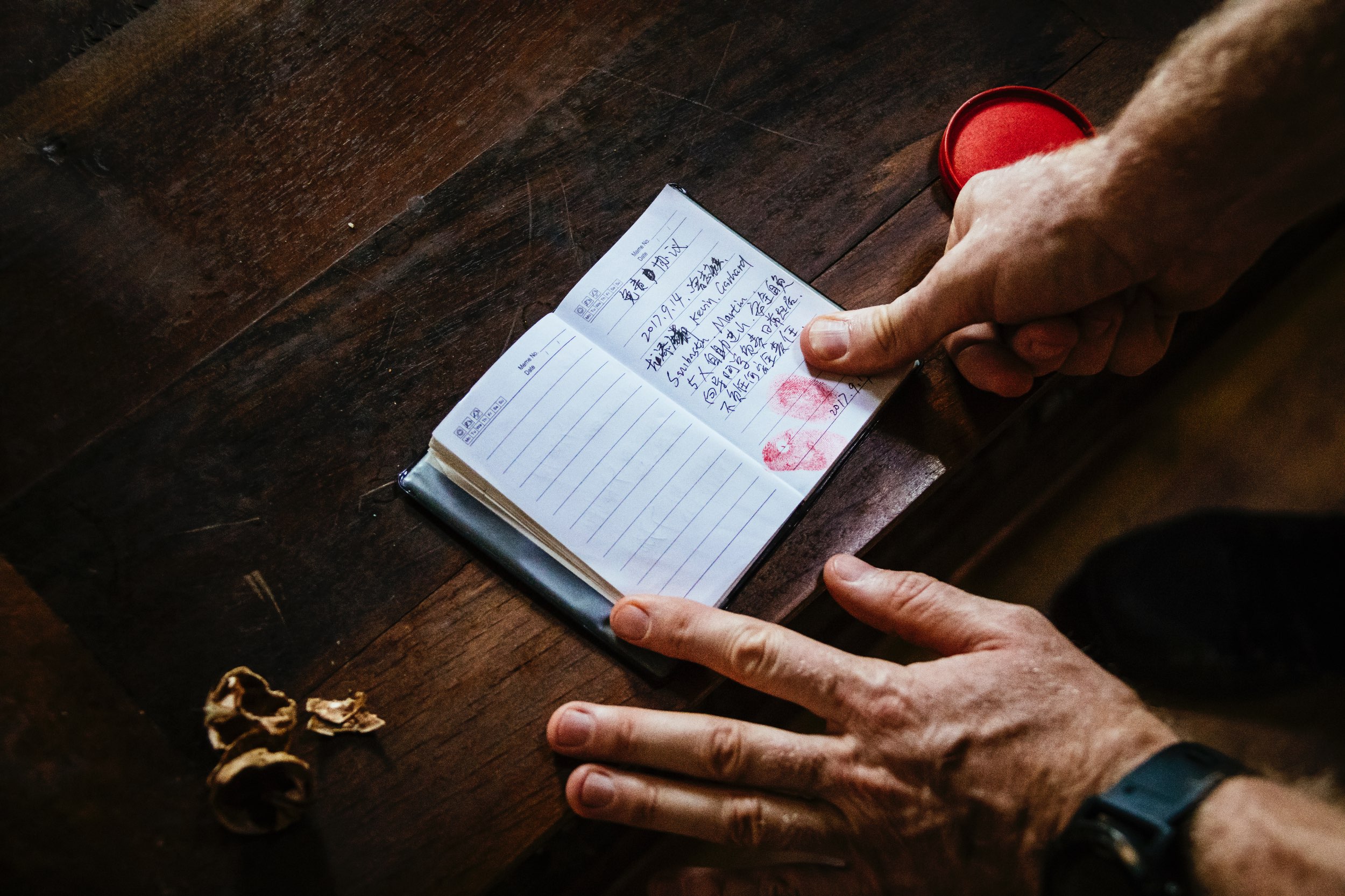 Das Gepäck wird gewogen, auf die Pferde verteilt und wir packen unsere Tagesrucksäcke. Vier Pferde benötigen wir nun mit dem ganzen Essen, sonst wird die Last zu schwer für die Tiere. Bevor wir starten dürfen, müssen wir noch eine Vereinbarung über die Leistung und Zahlung „unterzeichnen“. Dies geht nicht mit Stift und Unterschrift, sondern mit Stempelkissen und Fingerabdruck. Erst nachdem vier rote Fingerabdrücke auf dem Papier sind, dürfen wir starten. Eine steile Schotterstraße führt uns hinauf auf 3.200 Meter, unseren ersten Übergang. Hier endet die Straße und die Spannung steigt ins Unermessliche. Was erwartet uns hinter der ersten Kurve? Fahren? Schieben? Oder gar bergab Tragen?