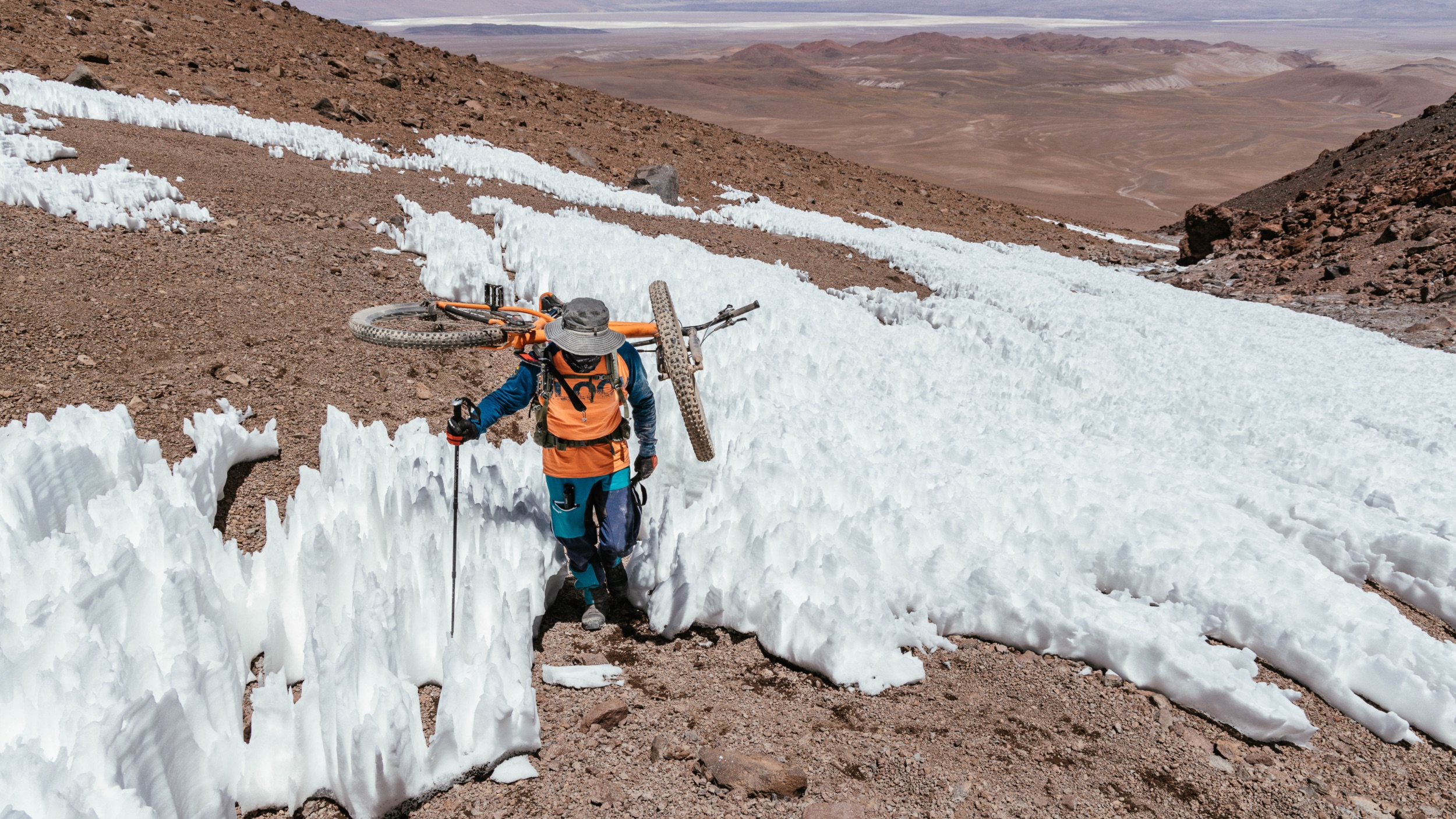 In Chile erlebt er nicht nur eine der trockensten Gegenden unserer Erde, sondern auch eine für ihn völlig neue Dimension des Mountainbikens. Dort, wo Wege in großen Höhen enden, beginnt das „Big Mountain Riding“, so nennt die chilenische Crew, mit der er unterwegs ist, ihre Art des Bikens an den höchsten Vulkanen der Welt. Jedoch läuft nicht alles nach Plan.
