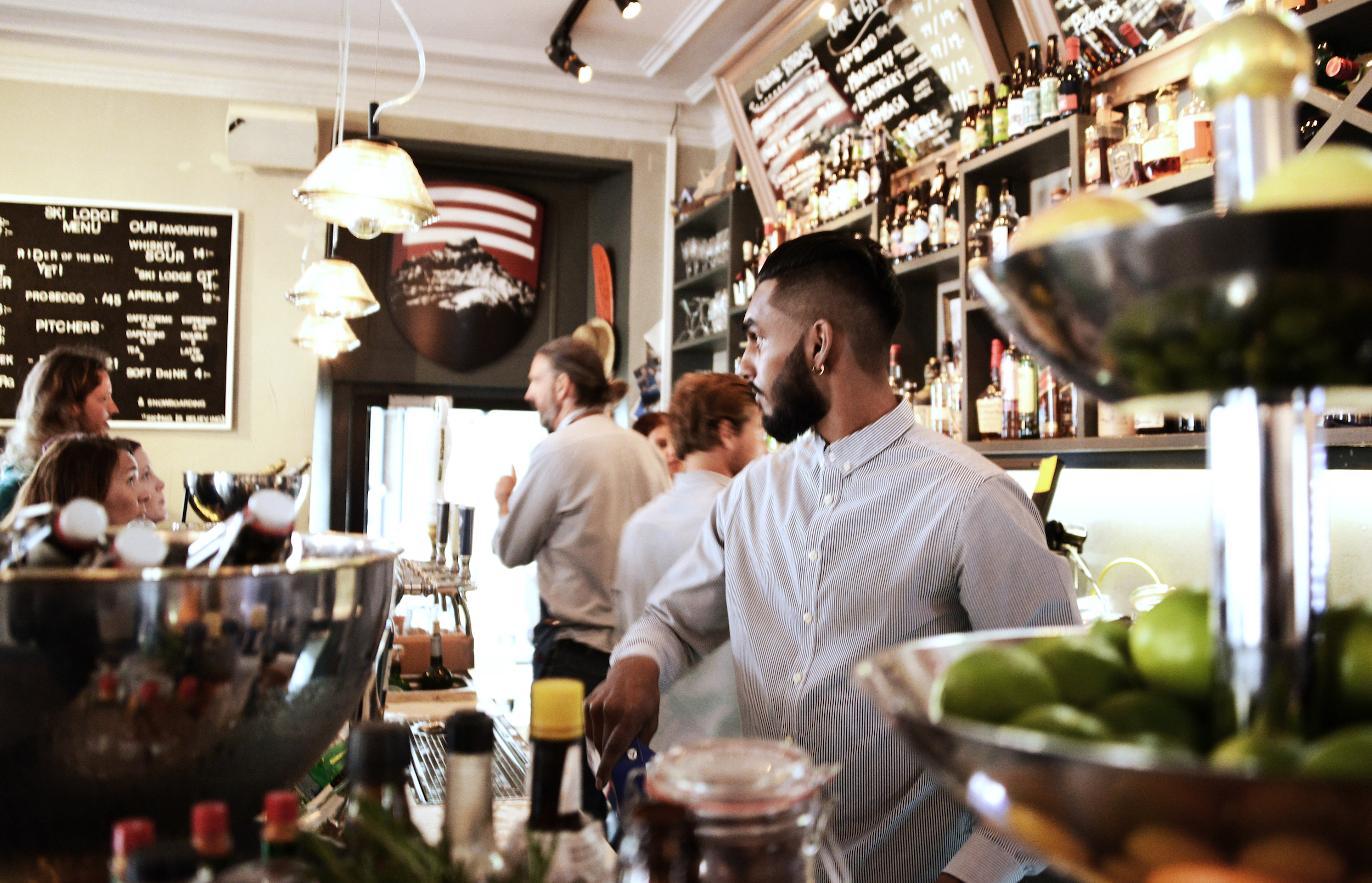Welche der Abfahrten man heute am besten ansteuert, erfährt man vom ebenfalls powderverrückten Personal, einem bunten Mix aus lustigen Skandinaviern, Deutschen, Schweizern, Engländern und Griechen. Nach dem Frühstück schwirren alle aus, um die großen Backcountry-Abenteuer und Heldengeschichten für die nachmittägliche Après Ski Sause zu sammeln. Dann nämlich trifft sich alles wieder in der Ski Lodge: die Ski Bums genauso wie der Bergführer mit seinen Gästen, die Locals, die Freeride Pros, die Familien mit ihren Kindern und alle, denen die besondere und unaufgeregte Atmosphäre in der Ski Lodge taugt. Da nicht jeder Freund der „sieben Bier sind auch ein Schnitzel”-Formel ist, besitzt die Ski Lodge mit der Brasserie Konrad auch ein ausgezeichnetes Restaurant mit sehr feinem Essen, das von der nordischen Küche inspiriert ist und mit regionalen Zutaten zubereitet wird. Eines ist den Betreibern der Ski Lodge nämlich wichtig: Niemand soll gezwungen sein das Hotel für feines Essen verlassen zu müssen. Spätestens um 24 Uhr ist Bettruhe, denn nach der Powderabfahrt ist ja bekanntlich vor der Powderabfahrt. Ach ja, eine Outdoor-Sauna samt Whirlpool gibt es natürlich auch.