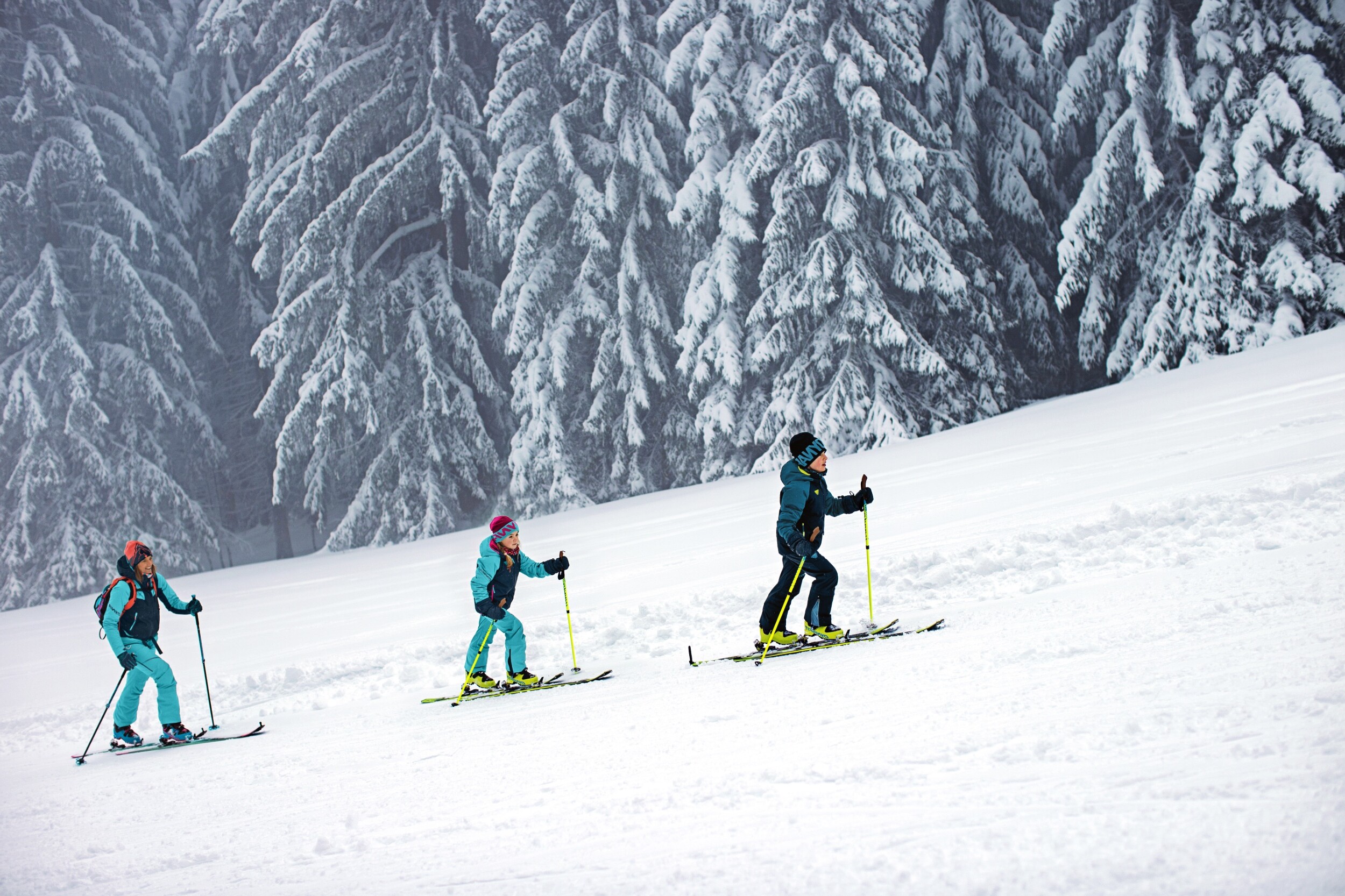 Skitourengehen kann ganz schön anstrengend sein und die Kinder müssen sich erst an die neuen Bewegungsabläufe gewöhnen. Daher sollten sich Eltern für die ersten Touren nicht zu viel vornehmen. Fordern ja, überfordern nein. 400 bis 500 Höhenmeter sind für den Anfang in der Regel vollkommen ausreichend und natürlich sollte auch das Gelände selbst nicht zu steil bzw. anspruchsvoll sein, damit die Kinder die Technik erst einmal erlernen können.