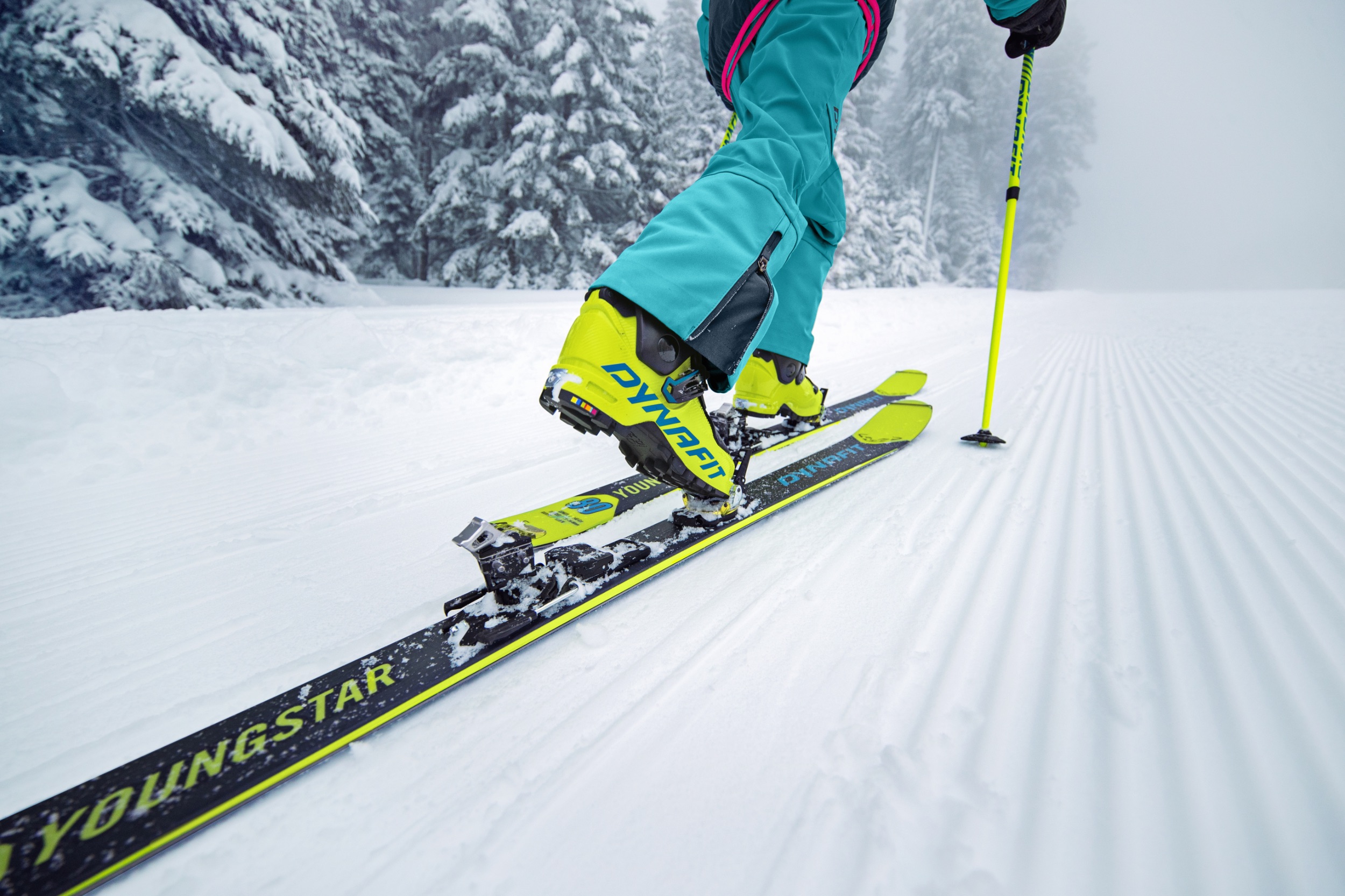 Das Dynafit Youngstar Set bietet Eltern die Möglichkeit, ihren Skitouren-affinen Nachwuchs mit ebenso hochwertigem Material auszurüsten wie sich selbst. Den Ski gibt es in fünf Längen von 120 bis 160 Zentimeter mit einer mittleren Skibreite zwischen 77 und 81 Millimetern. Das Gewicht liegt je nach Länge zwischen 1.643 und 2.133 Gramm. Als Bindung kommt die Rotation 7 Low-Tech Bindung zum Einsatz, die mit einem Auslösebereich von DIN 2,5 bis 7 speziell für Kinder und Jugendliche entwickelt wurde, und dank dem Rotationsvorderbacken die einzige Pin-Bindung auf dem Markt ist, die einer Sicherheitsbindung entspricht. Komplettiert wird das hochwertige, 700 Euro teure Set durch das passende Pomoca-Fell. Auch wenn sich der Preis im ersten Moment sehr hoch anhört, so ist das Preis-Leistungsverhältnis wirklich ein Knaller: Allein Bindung und Felle zusammen würden normalerweise fast so viel kosten wie das gesamte Set. Dynafit subventioniert das Set, um das Tourengehen für den Nachwuchs zugänglicher zu machen und die Jugend für die Bewegung in der Natur zu begeistern.