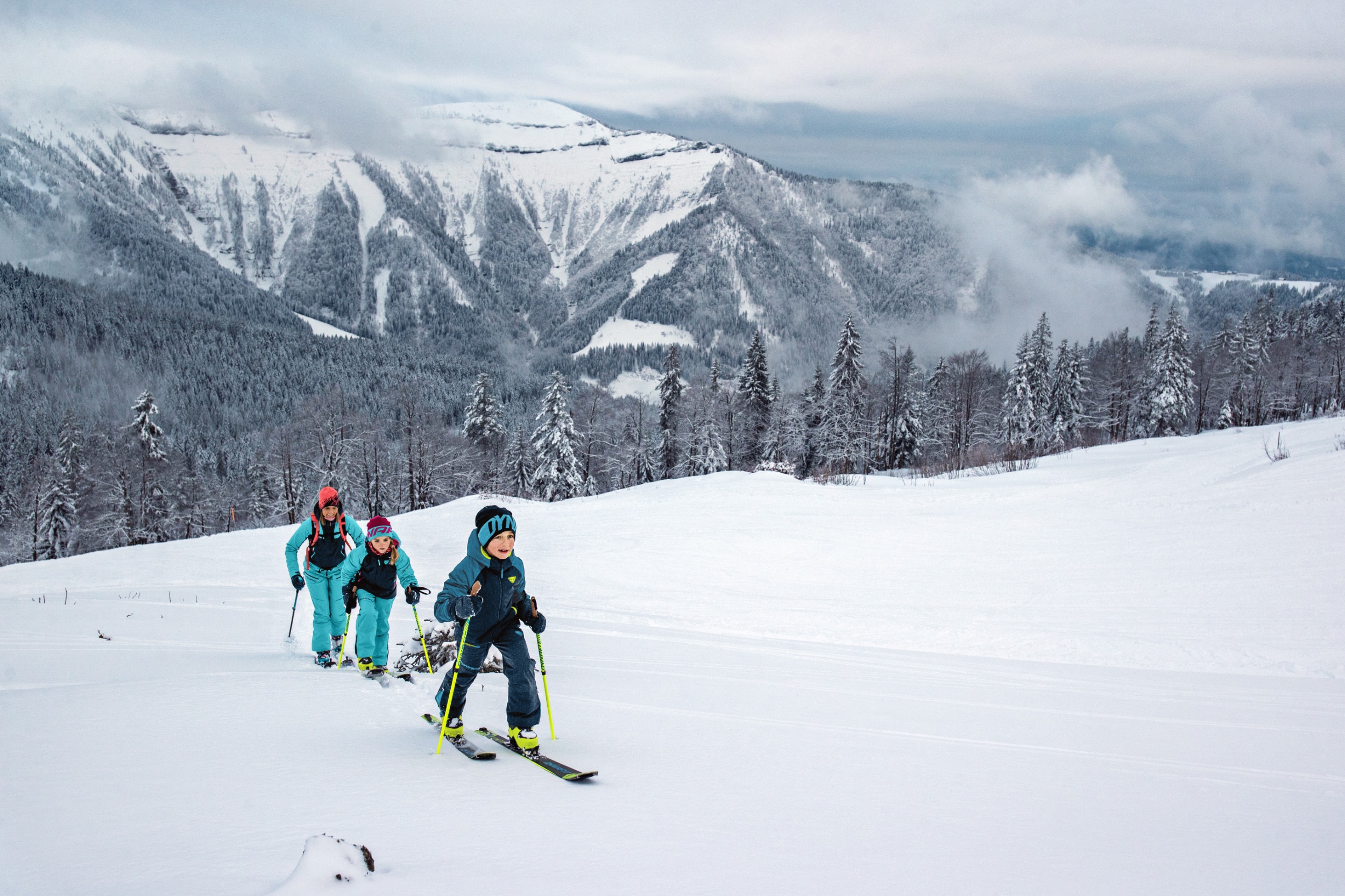 Kinder wollen entdecken und ihrem Spieltrieb nachkommen und das sollten Erwachsene auch beim Skitourengehen berücksichtigen. Kleine Umwege zu einem aussichtsreichen Plateau, ein Abstecher durch den Wald oder kleine Technikübungen sorgen für Abwechslung.