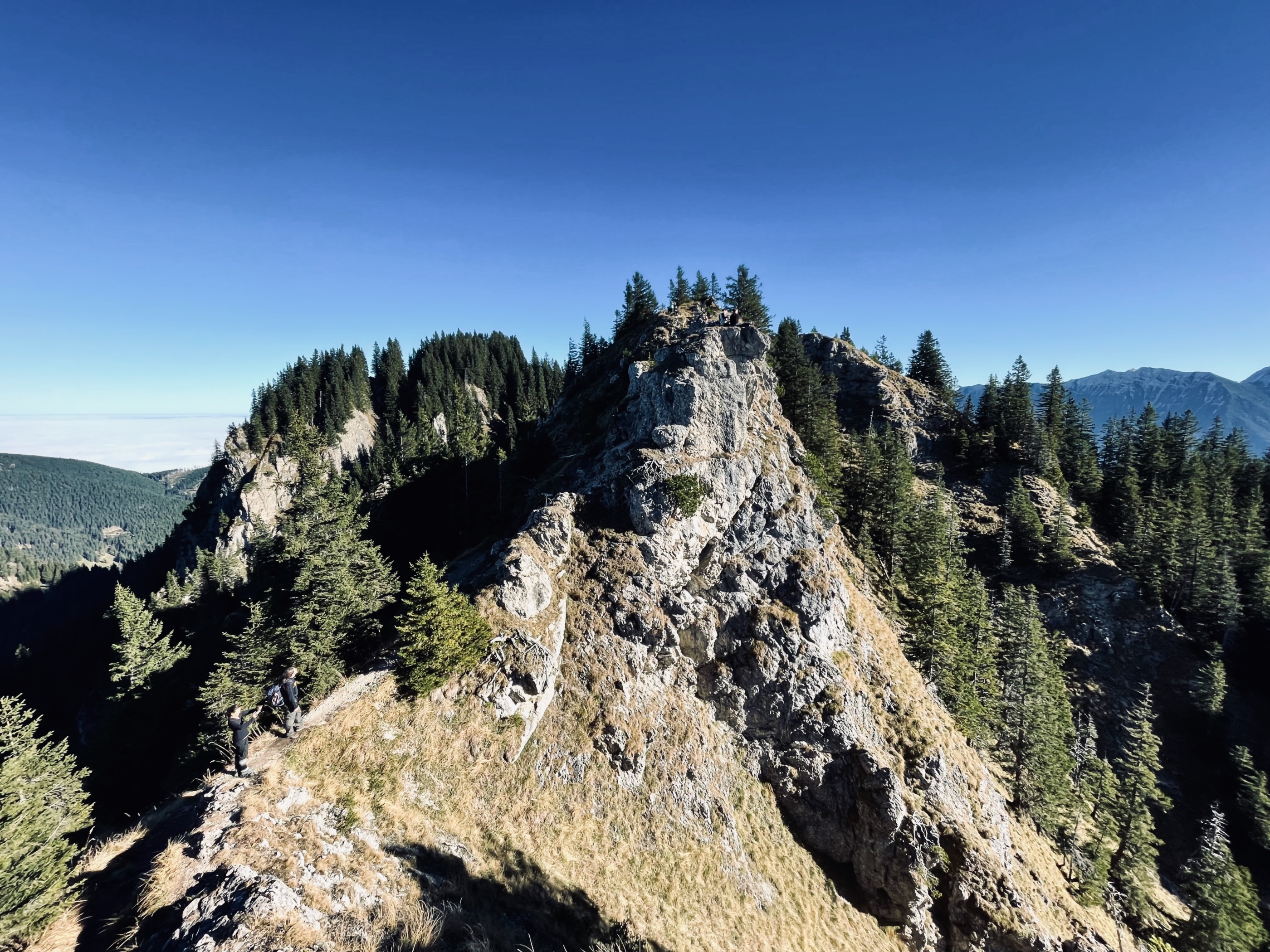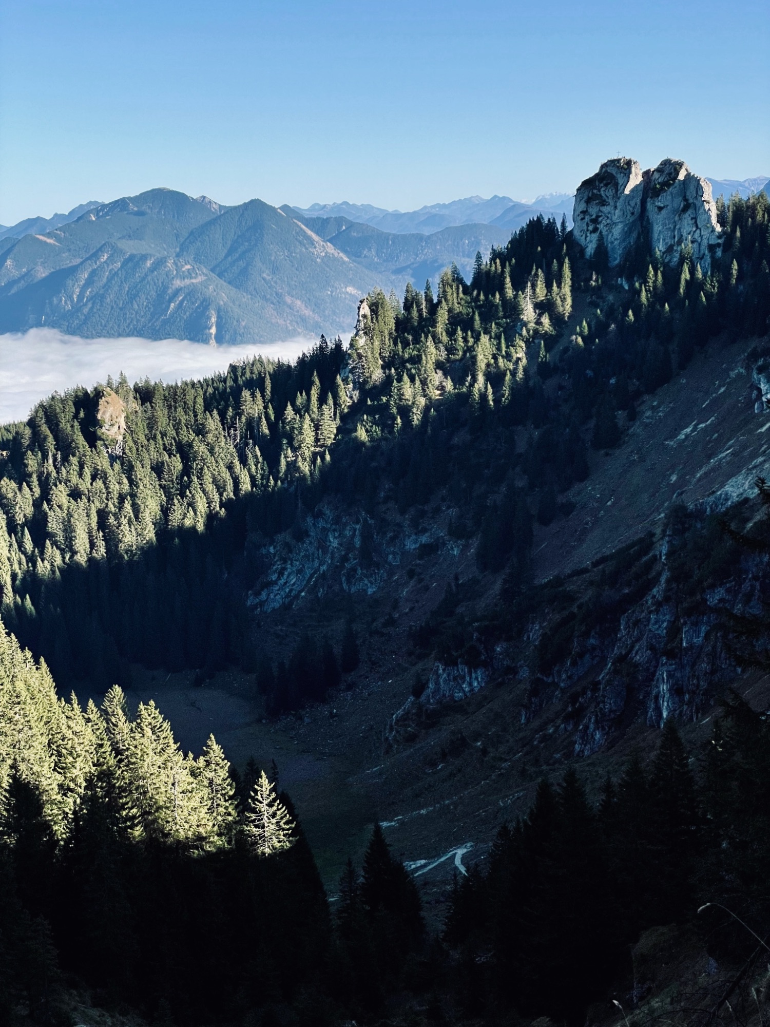 Der Jochberg zählt zu den Klassikern im Münchner Umland. Auch wenn hier keine Bahn hochführt wie am benachbarten Herzogstand, ist man selten alleine. Trotzdem lohnt sich diese kurze Tour, denn das 360 Grad Panorama vom Gipfel ist einfach der Wahnsinn. Auf der einen Seite grüßt tief unten der Kochelsee und auf der anderen, die bayerische Karibik, der türkisgrüne Walchensee. Die gewaltigen Gipfel des Karwendel geben sich die Hand mit denen des Wettersteins, einschließlich Zugspitze. Mit dem Zug geht es bis nach Kochel und vor dort weiter mit dem Bus bis zum Kesselberg. Hier startet der Wanderweg, der sich durch den steilen Bergwald noch oben zieht. Ihr folgt immer den Wegweisern Jochberg, dessen markantes Gipfelkreuz auf 1.565 Metern ihr nach einer Stunde und 45 Minuten erreicht. Wer Lust auf eine Rundtour hat, kann sich nach dem Gratabstieg bevor es in den Wald hineingeht links Richtung Jocheralm (1.382 m) halten. Von dort aus immer Richtung Urfeld, zuerst auf breiten Forstwegen und dann auf einem schmalen Pfad durch den Bergwald bis dieser einen am Ufer des Walchensee ausspuckt. Die letzten Meter geht es am Ufer entlang nach Urfeld, von wo aus der Bus zurück nach Kochel fährt.