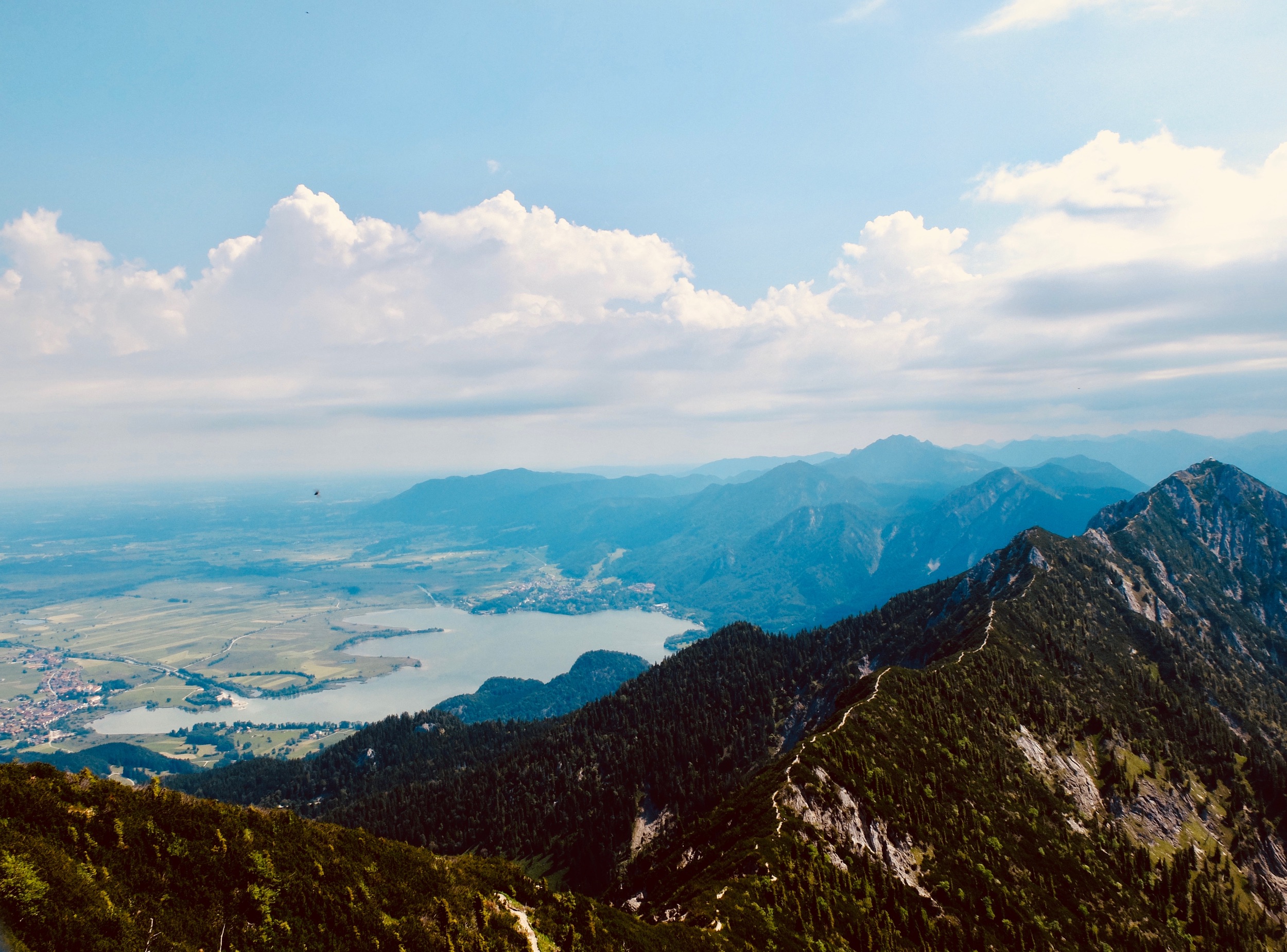 Der Heimgarten zählt zu recht zu den Klassikern unter den Münchner Hausbergen, denn das Panorama von dem freistehenden , 1.791 Meter hohen Gipfel ist gewaltig: Kochelsee, Herzogstand, Jochberg, Benediktenwand, Walchensee, Karwendel, Wetterstein mit Alp- und Zugspitze, Estergebirge und Laber mit Ettaler Mandel. Oben am Gipfelkreuz ist an Wochenenden so einiges los. Denn der Wanderklassiker lässt sich von drei Seiten besteigen: von Ohlsadt aus, von Schlehdorf und vom Walchensee. Einige, die am Walchensee die Tour beginnen, kürzen bergauf mit Hilfe der Herzogstandbahn ab und wandern dann über den Grat hinüber zum Heimgarten. Die hier beschriebene Variante startet in Ohlstadt, am südöstlichen Ortsrand beim Wanderparkplatz Heimgartenstraße. Auch hier ist man selten ganz alleine unterwegs, aber es ist meist entspannter als über den Herzogstand. Direkt hinter dem Parkplatz führt der schmale Wanderweg in den Wald und schlängelt sich vorbei an kleinen Wasserfällen und Gumpen. Immer wieder kreuzt der Weg die Forststraße, auf der man ein paar Meter läuft bis links oder rechts der kleine Wanderweg wieder auftaucht. Ab der Bärenfleckhütte geht es über einen teils recht steilen Bergsteig hinauf auf den Rücken, der den Heimgarten mit dem Rauheck verbindet. Von dort zieht sich ein ebenso steiler schmaler Schotterweg bis zur Heimgartenhütte, die direkt unterhalb des Gipfels liegt. Rund zweieinhalb bis drei Stunden benötigt man für 1.070 Höhenmeter Aufstieg von Ohlstadt aus. Während der Saison, von Mitte Mai bis Mitte Oktober lädt die kleine Berghütte zur Einkehr ein. Wer außerhalb der Saison unterwegs ist, packt am besten eine kleine Brotzeit in den Rucksack. Der Abstieg erfolgt über die Aufstiegsroute oder alternativ über die Kaseralm, wenn man eine kleine Rundtour machen möchte.