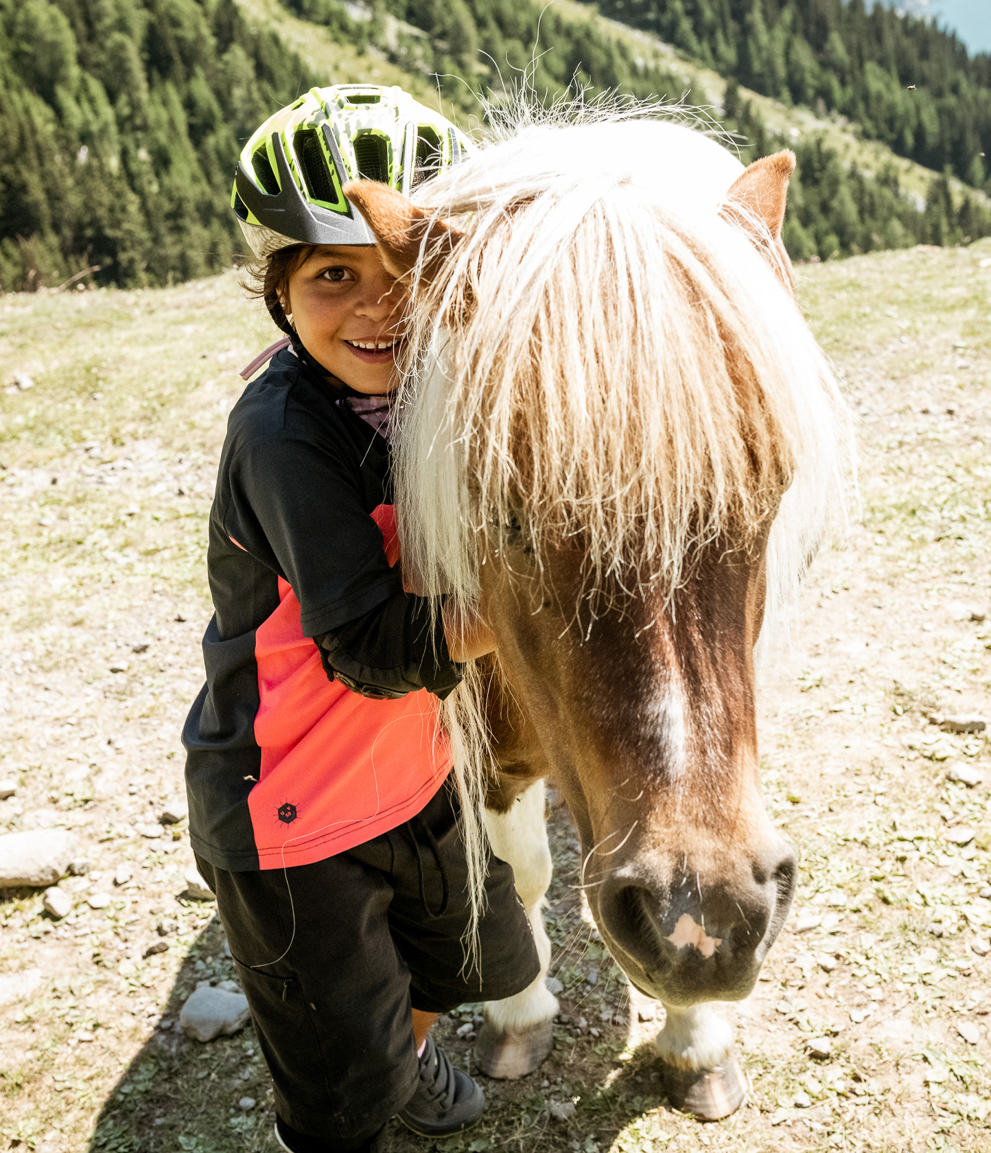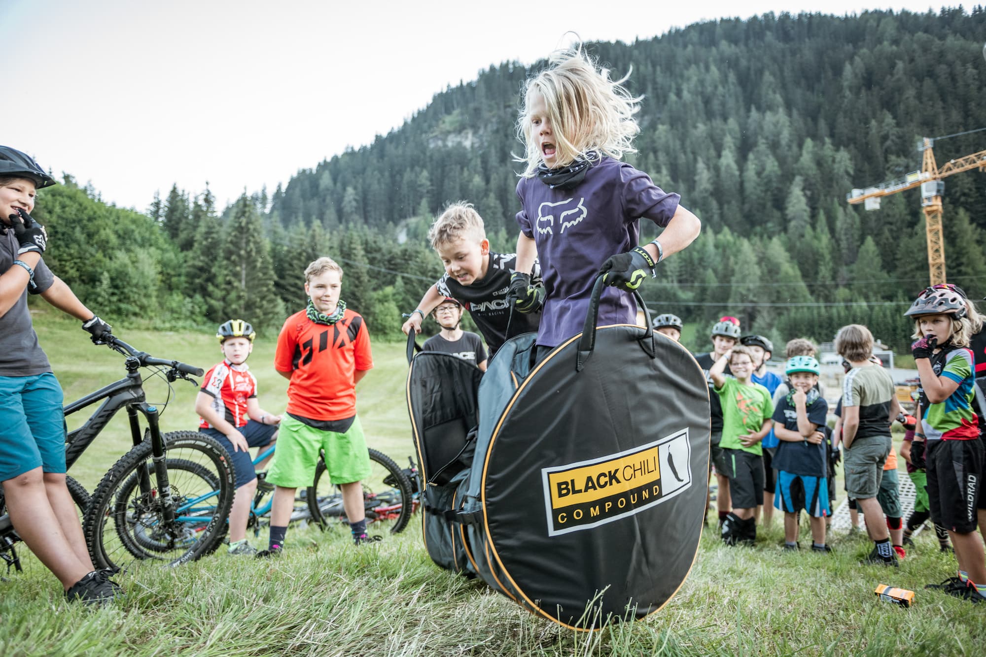Nach einer kurzen Pause im Hotel und einer erfrischenden Dusche machen wir uns wieder auf die Socken. Zusammen mit dem ganzen Tross kurbeln wir gute 100 Höhenmeter zu unserem heutigen Grill- und Lagerfeuerplatz, der sich als wahres Paradies entpuppt. Der kleiner idyllisch gelegener Mösle Weiher ist umgeben von riesigen Tannen, schroffen Bergen und einem richtig coolen Abenteuerspielplatz für Kinder. Und den nehmen sie auch sofort ein. Da ein Tag ohne kleinen Contest kein richtiger Tag ist, wird auf dem kupierten Wiesengelände flux ein Dual Slalom Kurs gesteckt und die jungen Wilden liefern sich wieder erbarmungslose Battles wie schon am Tag zuvor auf dem Kicker. Es ist einfach unglaublich wieviel Energie in den Kids steckt und das selbst nach einem ganzen Tag auf den nicht gerade unanspruchsvollen Trails und bei großer Hitze. Faszinierend. Mit Einbruch der Dunkelheit rollen wir wieder hinunter nach Nauders und ein weiterer großartiger Tag geht zu Ende.